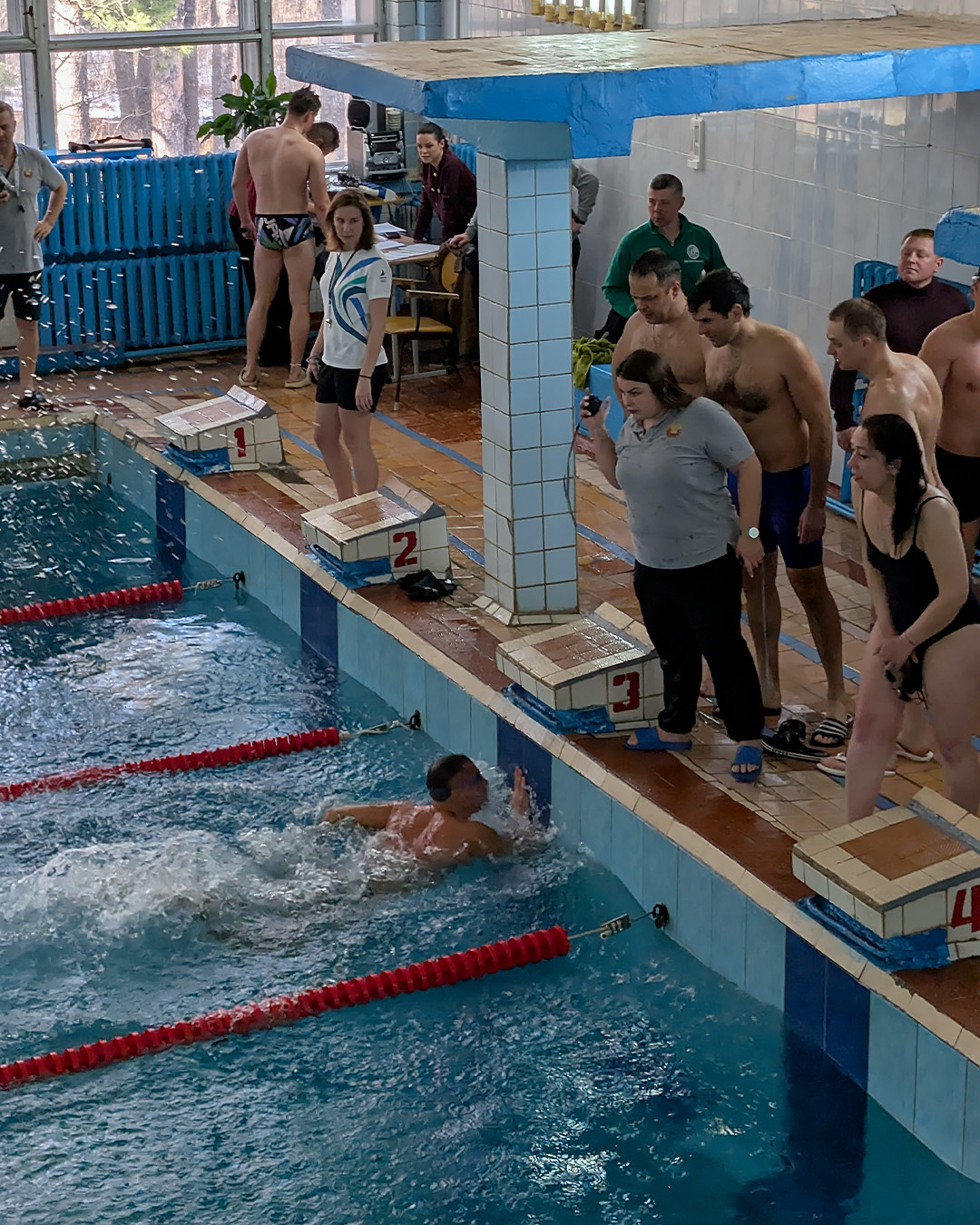 Командная эстафета 4×25 м (3 мужчины + 1 женщина).